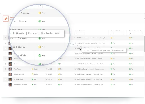 Review parent responses and absence excuses all in one place, instead of filtering through emails,